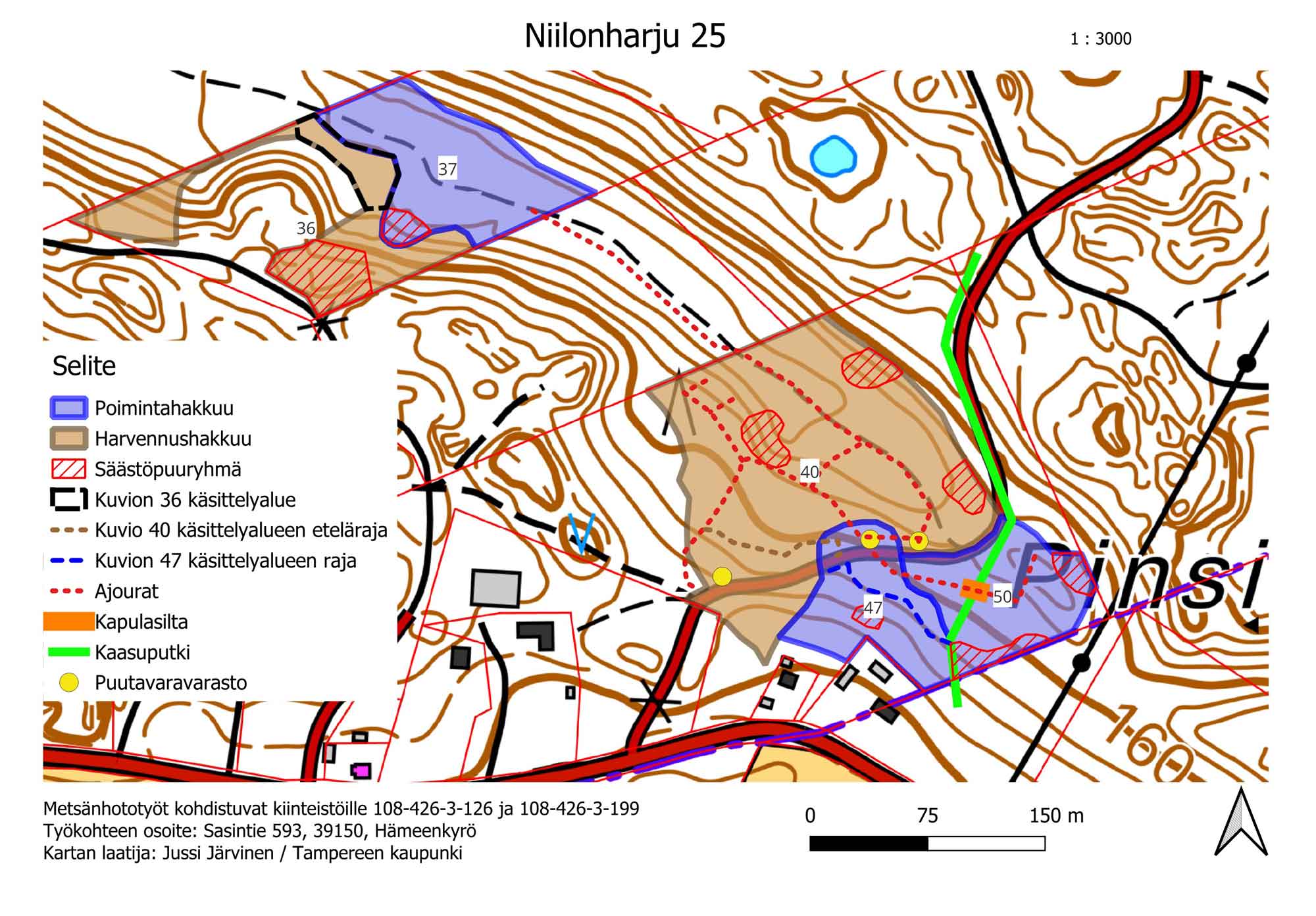 Hämeenkyrössä Vesiharjulla ja Niilonharjulla tehdään harvennus- ja poimintahakkuita syksyn ja talven 2025 aikana.