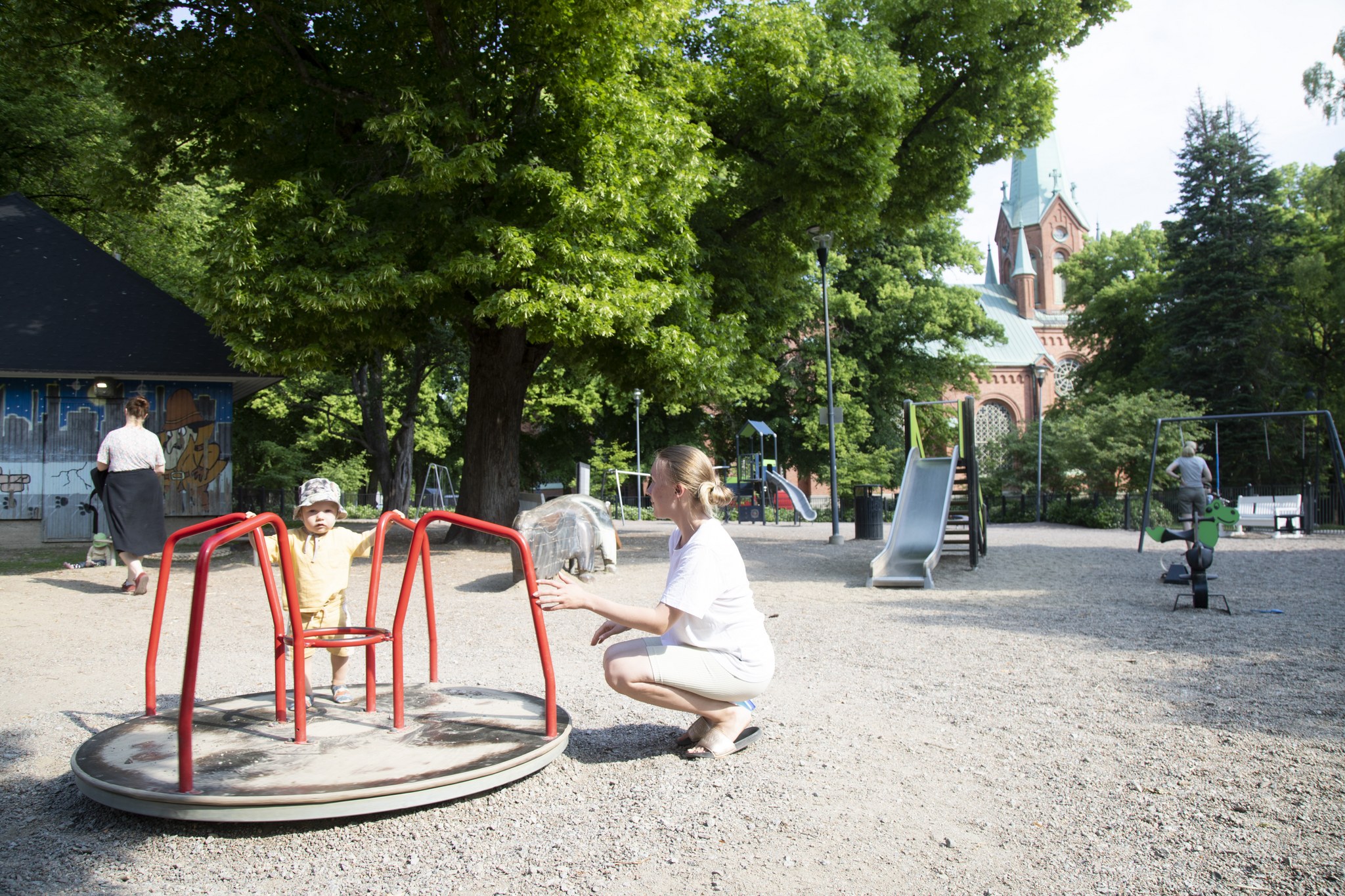 Alun perin paikalla on sijainnut Tampereen vanha hautausmaa, jonka käyttö loppui 1880-luvulla Kalevankankaan hautausmaan valmistuttua. Vanhoja hautamuistomerkkejä on yhä nähtävissä. Puiston hautausmaalla on useita vanhoja hautamuistomerkkejä, joita on kunnostettu 2014 - 2016. Merkkihenkilöt lepäävät sukuhauta-alueella ja muut seurakuntalaiset nurmen alla lähempänä kirkkoa.