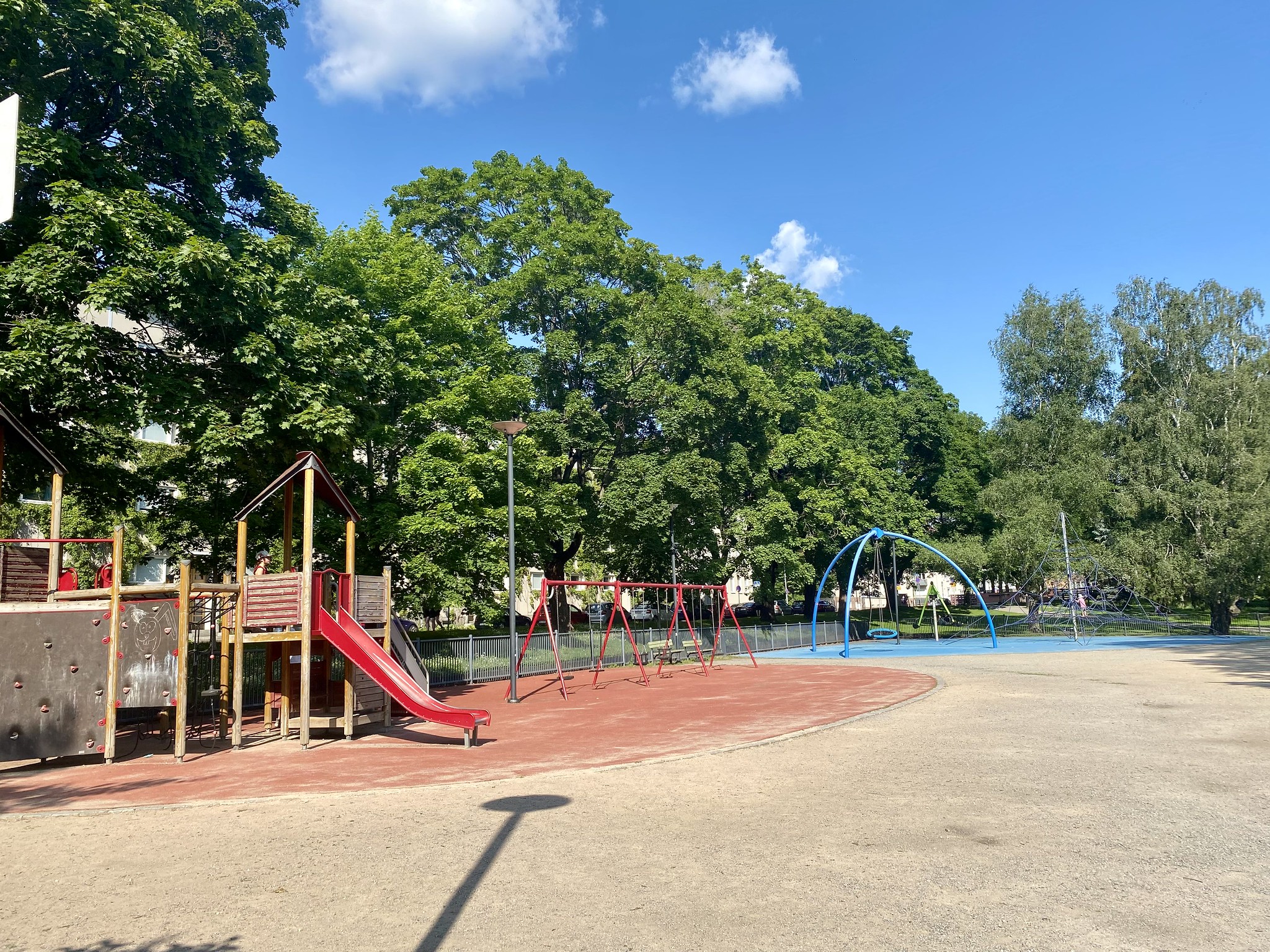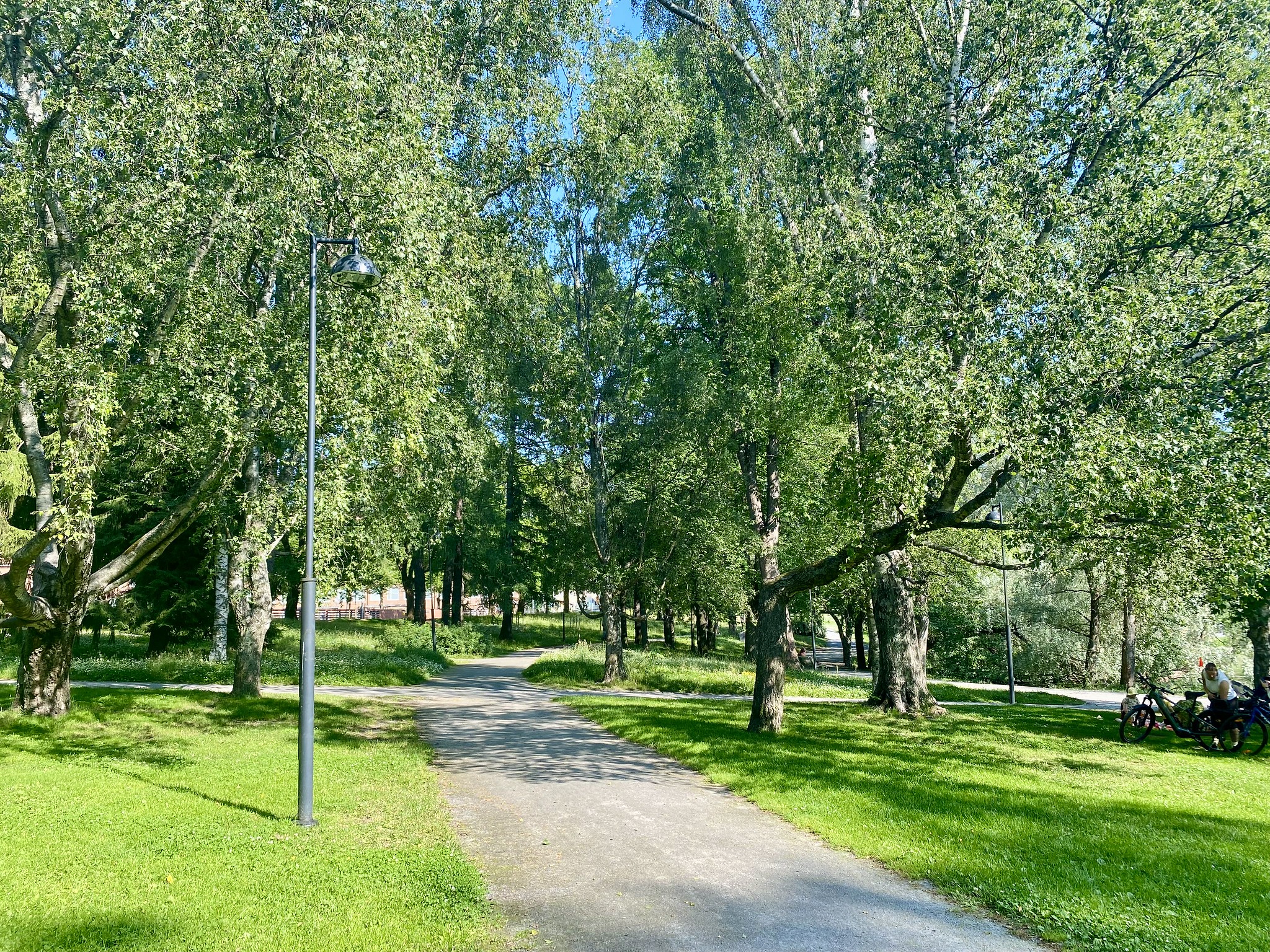 Puistossa on paljon niin lehti- kuin havupuita, joista osa on iäkkäitäkin.