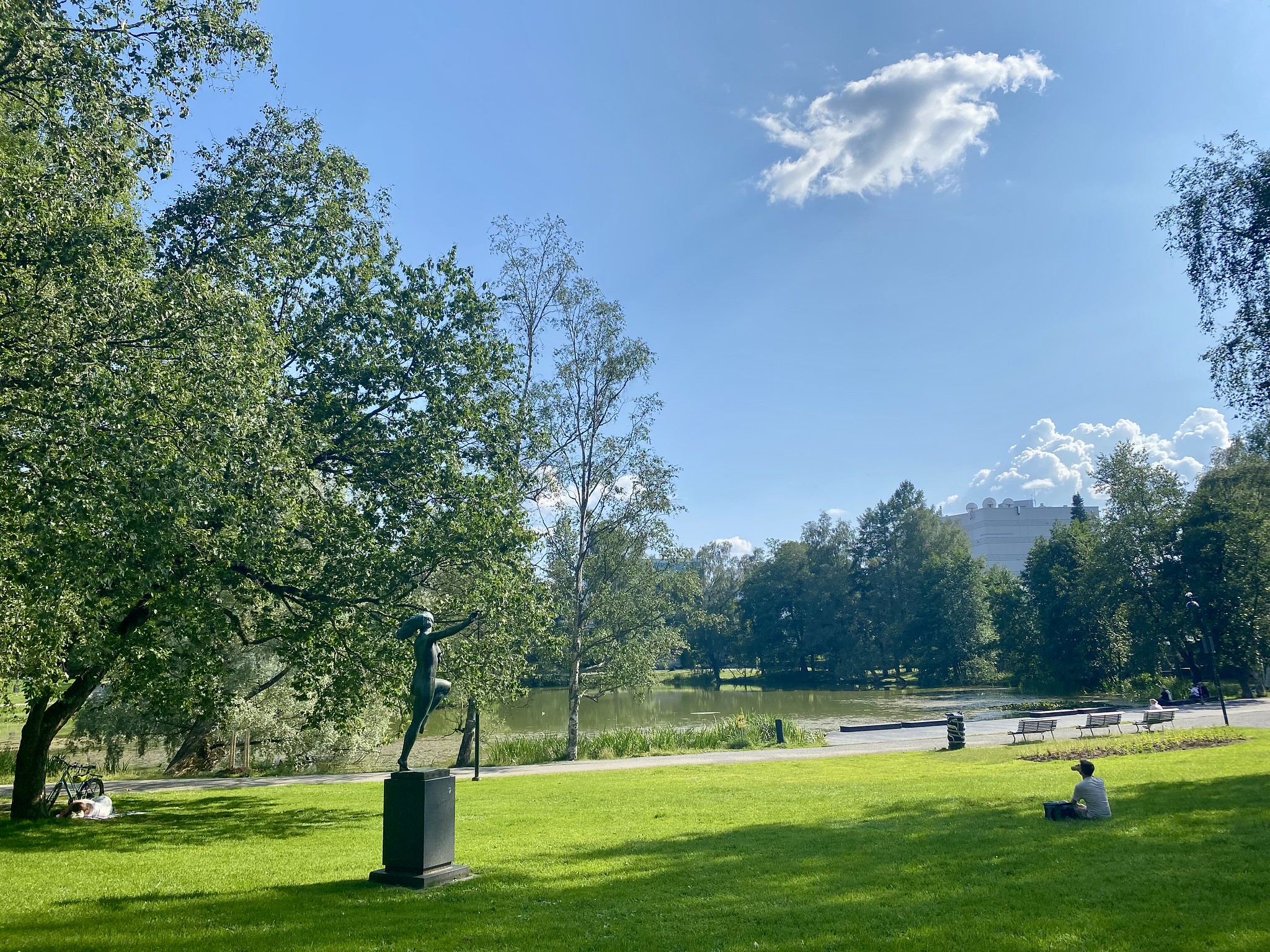 Puistossa on kolme Viktor Janssonin veistosta, jotka valaistaan pimeään aikaan. Puistossa on myös Väinö Rickhard Rautalinin Tanssiva tyttö -veistos. Myös lammen vesisuihku on saanut näyttävän valaistuksen.