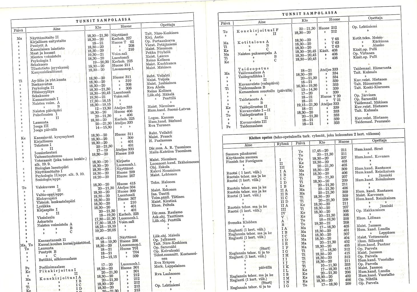 Vielä vuonna 1983 sai osallistua 10 markan toimistomaksulla niin monelle työväenopiston kurssille kuin vain jaksoi. Tämä takasi joka syksy työväenopiston toimistolle mahdottomat, läpi Sampolan pihan luikertelevat jonot, joista uutisoitiin näyttävästi lehtien etusivuilla.